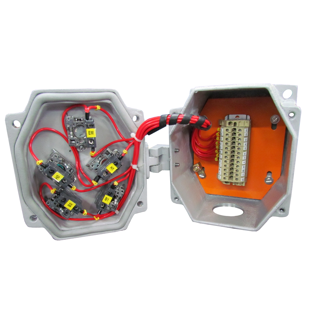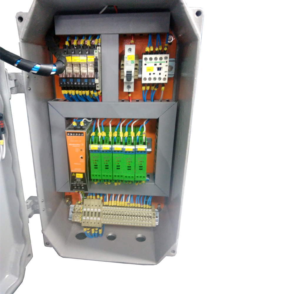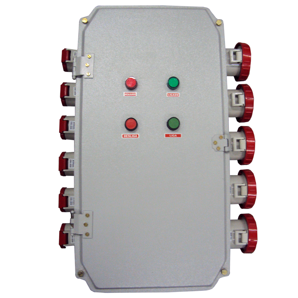 Montagens de disjuntores, chaves, bornes, interruptores, fusíveis, lâmpadas piloto, botões de impulso, emergência, etc., com qualquer combinação destes elementos.