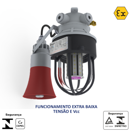 Sinalizador GiroLED sonoro plafonier de alto desempenho e eficiência para uso em áreas classificadas.
