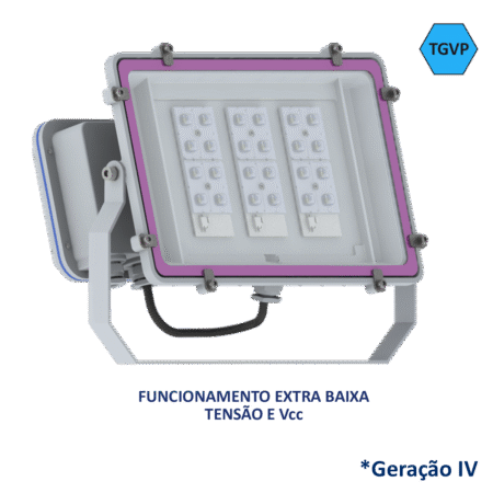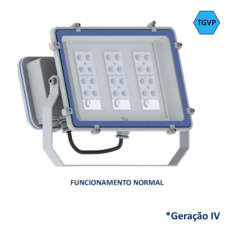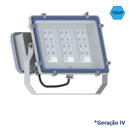 Projetor LED de alto desempenho e eficiência, à prova de tempo, gases, vapores, pós e jatos d’água.
